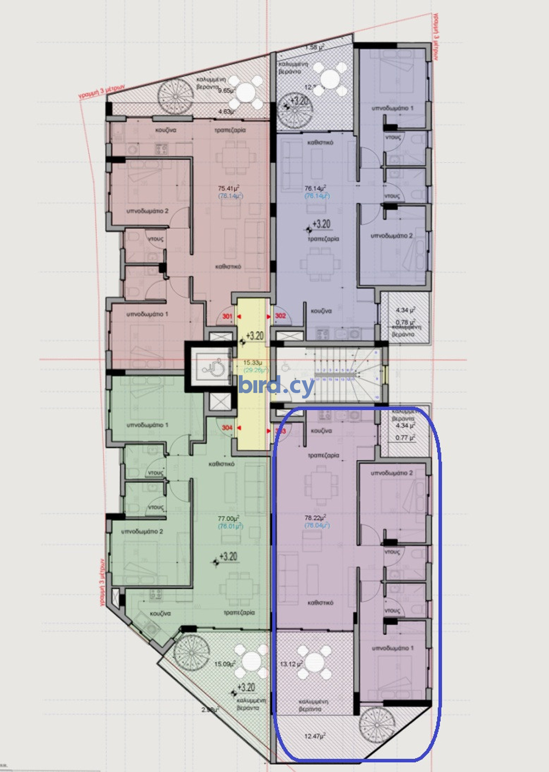 • 2 bedroom• 2 W/C• internal area 79m2• 1 covered parking space• storage room• Roof garden