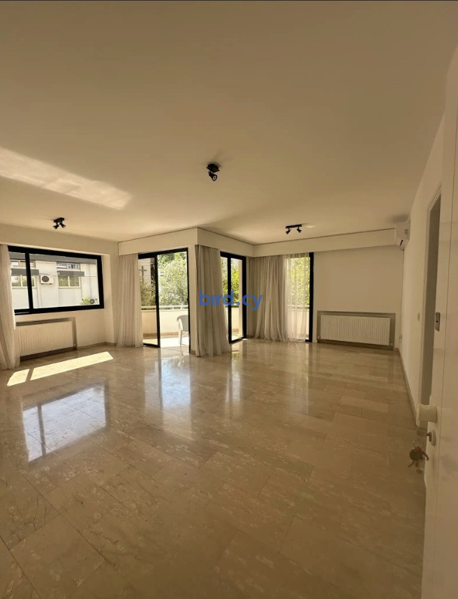 Beautiful 3 bedroom, 1st floor apartment in a 5 story residential building. The apartment is located in a quiet neighborhood in the center of Nicosia. Very close to supermarkets, European University, cafes, restaurants. It is 118m2 covered and another 10m2 covered veranda. Suitables for students and families. It is 1minute walking distance from Grammiko Park. It has 1 covered parking and 1 storage room on the ground level. Building is 1990 construction.