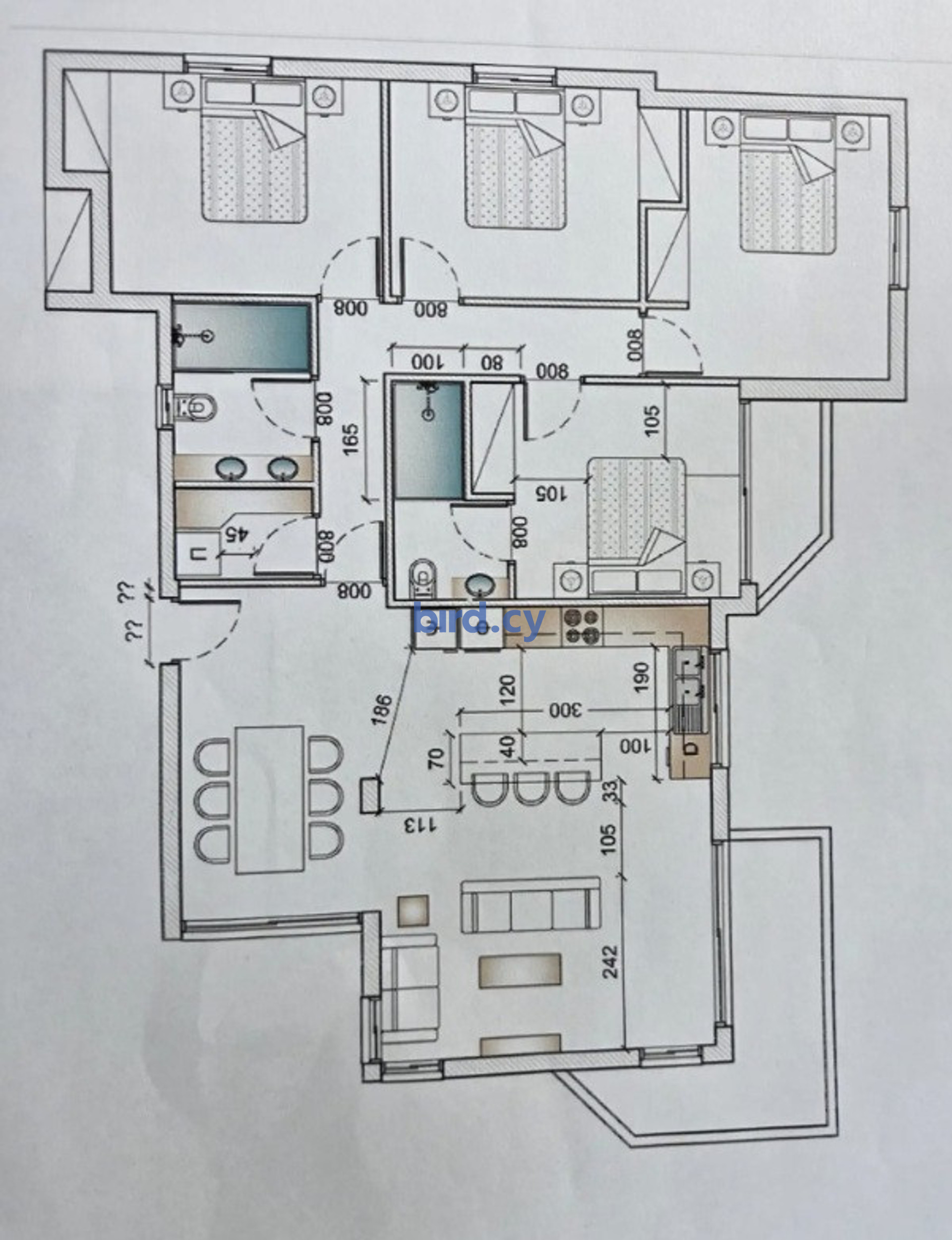 •Four-bedroom apartment with large floor-to-ceiling wardrobes