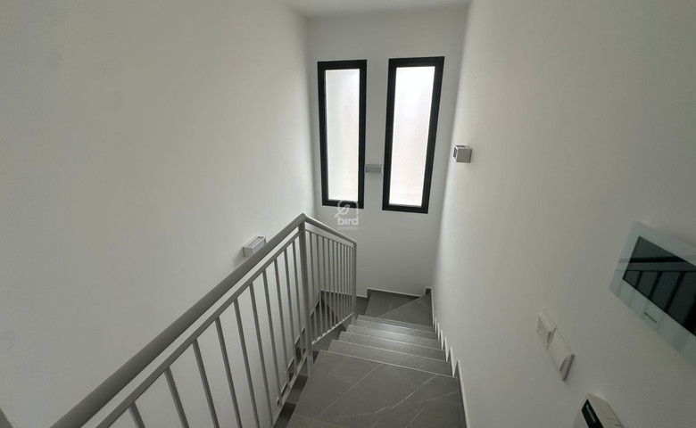 The home offers a perfect blend of modern comfort and functionality. Upstairs, you'll find three spacious bedrooms and two full bathrooms, with the main bedroom featuring a private en suite. For security and privacy, all rooms are equipped with electric rolling shutters.